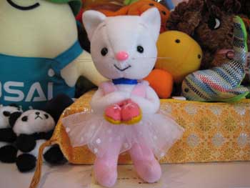 バレー教室さんの「猫ちゃん」キャラです。とってもキュートなチュチュをつけたマスコットです。こだわりの一品です。