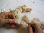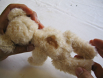 手足と頭が付きました。後は背中の穴からボディに綿を詰めてゆきます。