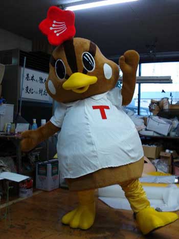 館林市役所様よりオーダーいただいたカルガモちゃんキャラです。写真はありませんが、ぬいぐるみと着ぐるみを製作させていただきました! 尻尾がかわいいキャラですよ。館林付近でご覧になりましたら!かわいがってね。 着ぐるみの中には、当社の着ぐるみ職人「堀くん」が入っています。